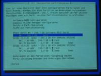 Wieder zurück zur Partitionsübersicht kann man jetzt schon die Partitionierung der ersten Platte erkennen. Mit der zweiten Festplatte ist genauso zu verfahren.